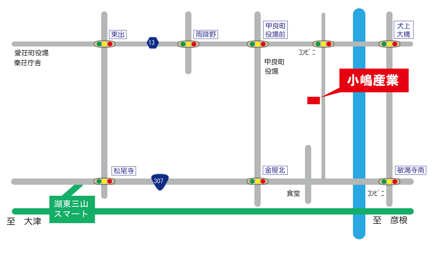 お車でお越しの際は、湖東三山スマートインターから国道307を北上してください。(約10分)